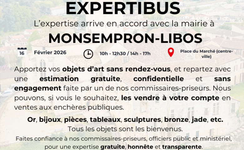 L'EXPERTIBUS sera présent sur la Place du Marché le lundi 16 février de 10h à 12h30 et de 14h à 17h.